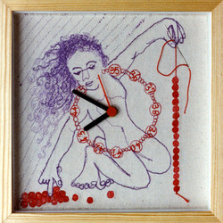 La broderie avec Fanny Viollet dont les motifs brodés surprennent par la variété des thèmes abordés et des matières employées, comme par la technique singulière adoptée par une virtuose de la machine à coudre. Ces œuvres faites de récupération de fils, de tissus et de papiers, discrètement ironiques et insolentes, évocatrices des conditions de vie des femmes, s'approchent de celles d'autres artistes femmes aux productions sensibles qui interrogent le monde de l'art officiel.