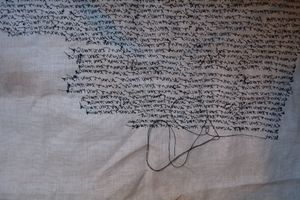 Le fil dont nous parle l’artiste Japonaise Rieko Koga est magique. Il est le lien qu’elle tisse vers les gens et les choses qui lui sont chers. Sans travail préparatoire, son aiguille traverse le tissu immaculé pour inscrire et matérialiser dans le fin maillage, son énergie, ses émotions, ses certitudes comme ses doutes.
