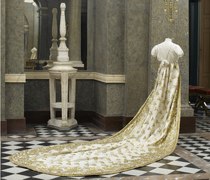 Dans la salle des atours, les placards de l’Impératrice sont toujours en place. Parmi les 230 robes, 100 châles, 450 chemises, 369 paires de bas, 876 mouchoirs rangés dans ces placards en 1814, le château conserve encore aujourd’hui des éléments somptueux et évocateurs. D’autres ont totalement disparus. Des fourrures garnissaient ses vêtements (manteaux, redingotes, pèlerines, bottes, manchons) comme l’hermine, la zibeline, le chinchilla mais aussi le renard jaune ou blanc, la vigogne, la martre, autant de noms évocateurs d’une garde-robe princière. Conservés par la famille impériale d’une génération à l’autre, mais aussi par les descendants de ceux qui entouraient l’impératrice, ou recueillis par des passionnés de l’Empire, c’est grâce à ces collectionneurs que l’on peut exposer ces textiles précieux.