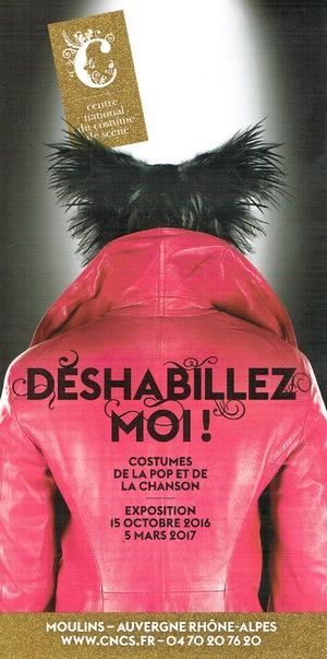 En 2016, le Centre national du costume de scène à Moulins célèbre ses 10 ans et clôture cette année anniversaire en chanson avec l’exposition événement “Déshabillez-moi ! Les costumes de la pop et de la chanson”.