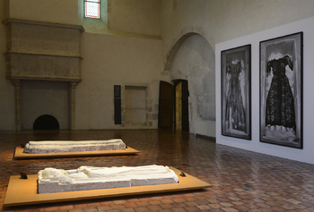 Le projet se déploie en écho ou en contrepoint des collections historiques du Musée de l’Hospice Saint-Roch d’Issoudun, au fil précisément des dix-sept salles de l’ancien Hôtel-Dieu de la ville, construit dés le XIIème siècle. On rencontre des pièces en laine, en lin ou en fourrure et des coupons teintés. Il y a également des entrelacs, des robes de soie et de dentelle photographiées, une robe en papier, des fils d’acier, de coton, de cheveux ou vidéographiques et un linge en impression digitale 3D…