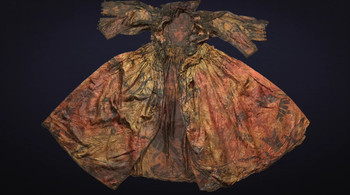 Au milieu de ces étoffes, apparaît alors du damas, une soie resplendissante révélant un tissage fleuri. Cette robe vieille de près de 400 ans, corsage à manches rehaussé d’un faux-col et jupe large plissée, ressemble à la tenue que porte la comtesse Catherine Howard, née Catharina Knyvett, sur une peinture de William Larkin au début du 17e siècle. “Tous ces vêtements de même taille devaient appartenir à une seule et même dame qui fuyait probablement la guerre civile au cours de laquelle le roi Charles Ier d’Angleterre (1600-1649) a été tué par le Parlement”, a analysé le responsable de projet.