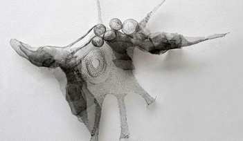 Dans son œuvre fantasmatique, minutieuse et précise, l’artiste met en scène et en mouvement des cristallisations de l’inconscient, formes étranges et organiques qui oscillent entre la fragilité, la complexité et l’érotisme. Ses réalisations se présentent comme de petites pièces tissées qui mêlent ombres et volumes, lignes et mouvements, suspensions et projections.
