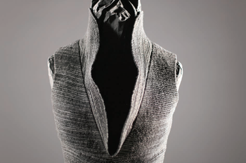 Suite à un coup de cœur pour son travail, Pierre Bergé a souhaité consacrer à Noureddine Amir une exposition à la Fondation Pierre Bergé – Yves Saint Laurent qui présentera les créations de ce couturier marocain qui réalise de véritables parures sculpturales à partir de divers matériaux (laine, raphia, mousseline de soie, etc.) façonnés avec justesse et précision.