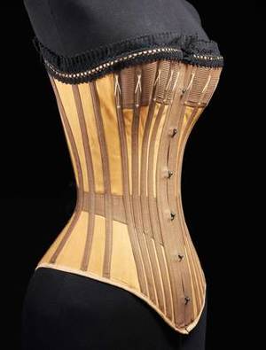L’exposition démarre au XVIIIe siècle. Les femmes ne portent alors, ni culotte ni caleçon mais, à même la peau, des chemises fluides réalisées en fibres naturelles. Ces tuniques sont enserrées dans des corsets destinés à soutenir la poitrine et sculpter la silhouette, tout en constituant une sorte de base pour les robes. Le corset n’était pas l’apanage de la haute société mais se devait d’être porté par les femmes de toutes conditions, sous peine sinon de heurter les bonnes mœurs. Le parcours continue avec la mode contemporaine des sous vêtements et des corsets par les couturiers qui en font également un vêtement de dessus.