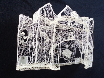 Une poésie, étrange et franche, perle à la surface de ses travaux cousus de mailles serrées ou vaporeuses, enchevêtrées ou ajourées. Cette poésie gagne jusqu’aux titres qui accompagnent les œuvres et les nomment, tels que « Veste-cage », « J’en parle à ma fenêtre », « Habit de ville pour souris des champs ».