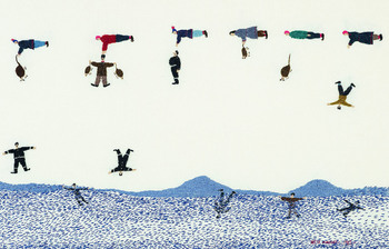 Ă Lunds, est prĂ©sentĂ©e une reproduction de cette Ćuvre, que lâon pourrait appeler une peinture dâhistoire contemporaine (bien quâelle soit brodĂ©e et bien quâelle sâappuie sur une tradition orale plutĂŽt que sur un savoir enregistrĂ©). Dâautres Ćuvres de lâexposition sont Ă©galement des rĂ©cits monumentaux dâĂ©vĂ©nements historiques qui se rattachent Ă  la rĂ©alitĂ© sami, tout comme ses techniques textiles choisies : la broderie et les appliquĂ©s, duodji (art appliquĂ©, design) en sĂąme du nord.