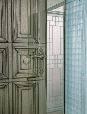 La démarche de Do Ho Suh a quelque chose de méditatif. Il coud méticuleusement chaque détail des pièces de telle sorte que, par exemple, les poignées et les prises de courant soient placées exactement comme elles sont dans l’espace réel. Les goujons aident à rigidifier le matériau de sorte que les grands plans se séparant puissent se tenir verticalement dans les airs, ce qui donnent une impression de couloirs en apesanteur.