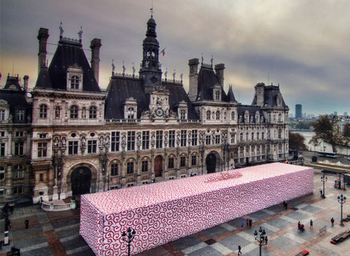 Le Furoshiki, technique d’emballage traditionnelle avec du tissu utilisée depuis le VIIIe siècle, est à l’honneur en format géant sur le parvis de l’Hôtel de Ville. Il a été conçu par l’architecte Tsuyoshi Tanen, prix NAJAP des jeunes architectes décerné par le ministère français de la Culture.