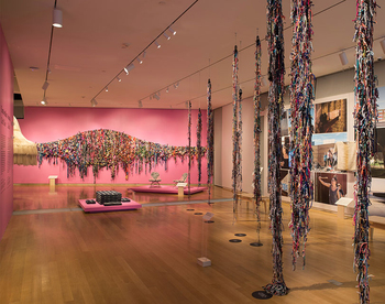 Tanya Aguiñiga: Craft & Care est exposée dans la galerie du deuxième étage, l’espace de la galerie MAD dédié à l’approfondissement des expériences d’exposition des visiteurs grâce à l’apprentissage interactif, la recherche et la réflexion, à côté de l’exposition thématique La Frontera.
