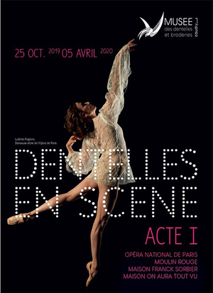 Dentelles en scène met en lumière l’utilisation des dentelles, tulles et broderies dans les arts du spectacle – opéra, cirque et revue – tout en faisant un parallèle avec ces thèmes dans la création Haute Couture contemporaine.