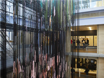 Au sein du Jongeriuslab, basé à Berlin, les recherches théoriques et expérimentales de la designeuse néerlandaise, Hella Jongerius portent principalement sur la signification des couleurs et des matériaux. Pour Lafayette Anticipations, elle a imaginé un projet autour du textile et du tissage : elle transforme ses espaces en une grande fabrique de tissu ouverte au public. Les qualités performatives du bâtiment sont mises à contribution et les plateformes mobiles utilisées comme la structure d’un gigantesque métier à tisser en mutation constante.