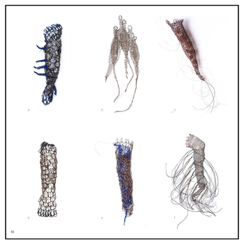 Elle observe tout au long de ses créations, les métamorphoses, les tensions, les relâchements, les ondulations ou les étirements, grâce à la technique de la maille et les mélanges de fils de cuivre émaillés, d’inox ou de nylon.