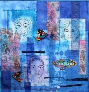 Le défi consistait pour les artistes à inclure au moins un œil brodé par les femmes afghanes dans une composition textile de 60 × 60 cm, toutes les facettes du thème pouvant être interprétées.