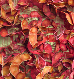 Cédric Pollet dévoile l’incroyable diversité des fruits et des graines : formes, couleurs, structures, saveurs, parfums et stratégies de dissémination grâce à de nombreux échantillons venant du monde entier. Séverine Cadier (artgraine.net) les interprète à travers ses sculptures avec différentes techniques de céramique, restituant leur beauté et leur puissance. Marie-Noëlle Fontan, tisse avec délicatesse, ces éléments naturels que sont les gousses de nos arbres, les racines, les écorces et les fibres.