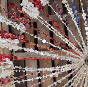 Réinterprétant les techniques traditionnelles, le duo crée des pièces uniques et surdimensionnées. Vous découvrirez des tissages, tricotages, nouages et autres macramés dans des matières recyclées : tissus, papiers, métaux et produits de mercerie.