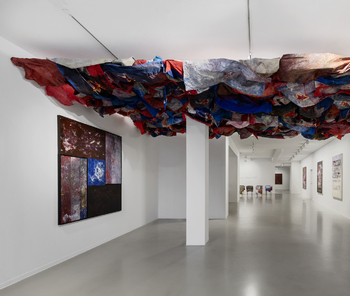 C'est par hasard ou peut-être un acte de providence artistique qu'il est entré en possession d'une quantité énorme de drapeaux nationaux, drapeaux de l'ancien parti unique et du mouvement prolétarien de Yougoslavie. Grubanov a commencé à les utiliser comme outils pour absorber et étaler de la peinture sur ses toiles, voulant leur redonner vie. Le processus intuitif et rituel de recouvrement et d'obscurcissement des drapeaux avec de la peinture aide l'artiste à faire face au passé violent de son pays.