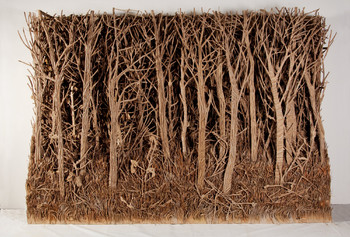 A partir de cette matière pauvre parmi les pauvres, l'artiste invente un univers étrangement baroque. Au fil de ses quinze ans de carrière, elle a coupé, collé, décollé, dentelé, superposé, composé des milliers d’emballages déchus, des souvenirs de déménagements par centaines. Et, à partir de ces fragments, elle a mis en scène d’envoûtantes forêts, des grottes sans âge.
