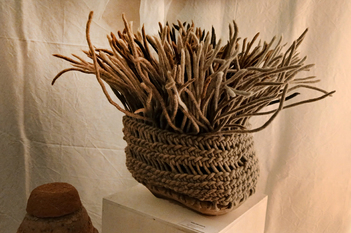 A l'heure où l'on peut trouver des urnes funéraires d'occasion sur des sites de revente, des artistes, sous l'impulsion de Caroline Pelletti Victor, ont imaginé toutes sortes de contenant étranges et de toute beauté, dont cette urne en feutre de laine tressé comme un objet de vannerie de Ghislaine Garcin. Ce détournement de la matière, qui substitue la laine feutrée aux fibres traditionnelles du tressage brouille les repères et les perceptions.