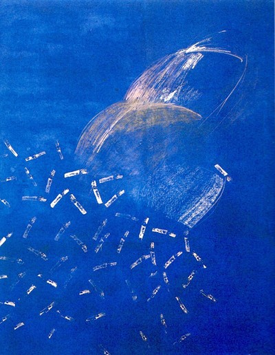 En 1964-65, en faisant intervenir une part de hasard et afin de perturber la façon occidentale d’appréhender le monde, elle utilise des baguettes de jonc ( en référence au Mikado) qu’elle jette sur des fonds qu’elle bombarde de peinture et qui gardent, une fois les baguettes enlevées, la trace de leur présence éphémère.