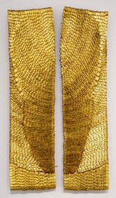A partir de 1996, Olga de Amaral débute également les Estelas qui prennent la forme de stèles dorées, composées d’une structure tissée en coton très rigide et recouvertes d’une épaisse couche de gesso puis de peinture acrylique et de feuilles d’or qui font presque oublier le tissu. Pour elles, l'artiste abandonne les petits carrés espacés les uns des autres par l'apparition des fils de chaîne qui ont jusqu'à présent fait partie de son vocabulaire formel et avec lesquels elle avait créé des rubans, matière première de ses surfaces. Dans cette série des Estelas, Olga a préservé malgré tout une immuable structure tissée en coton comme base sous la couche du précieux métal. Cette conservation nous renvoie à la question de l’identité. Ici, celle de l’artiste issue d'une formation au tissage auprès de Marianne Strengell. Le tissage, c’est son essence, sa singularité, son âme, son noyau qui fait qu’elle reste elle-même - artiste textile - au cœur du changement et de l’évolution de ses créations.
