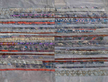 Voyageur, écrivain, poète, Claude Lagoutte réalise des tableaux faits de bandes de papiers cousus.