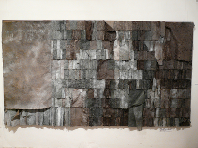 Au début des années 80, elle commence la série des Bibliothèques en cendre, qui seront exposées à l’Hôtel Rothchild à Paris, à la Biennale de Lausanne, au musée Bellerive à Zurich, au Barbican Center à Londres. Cette série des Bibliothèques en cendre est une réflexion noire sur l’Humanisme. Textile Art qui s’intéresse à son imposant travail plastique en feutre, lui demande de parler de son approche pour le numéro Papier/matière.
