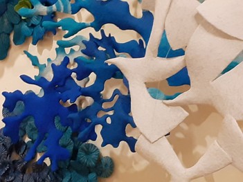Remarquons particulièrement les recherches de Françoise Chamagnede avec la matière (linges plissés, noués, cordes et laines mêlées, bas reliefs…). Depuis 2000, le lin à l’état de feutre, est le support privilégié de son travail. Elle s’est approprié ce matériau en mettant au point une technique originale lui permettant de créer aussi bien des sculptures que des œuvres murales de grands formats.