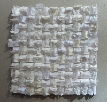 Dans des compositions inédites Sabine Cibert poursuit ses recherches textiles sur la couleur. Empreintes de poésie, les oeuvres proposées dans Dégel portent sur les couleurs de l'eau gelée, le blanc et ses variations. Sabine Cibert réussit le tour de force de rendre visible l'impalpable lumière de la neige au printemps.