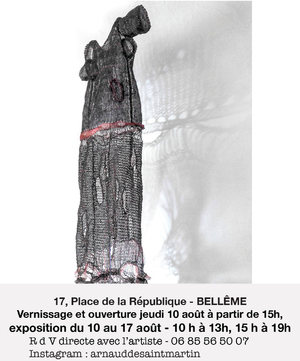 Diana Brennan expose ses longue robes tricotées pour quelques jours parmi les portes présentes dans le showroom de Arnaud de Saint Martin.
