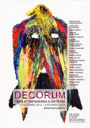 L’exposition Decorum qui présente plus d’une centaine de tapis et de tapisseries signés par des artistes modernes (Fernand Léger, Jean Lurçat, Pablo Picasso, …) et contemporains (Dewar & Gicquel, Vidya Gastaldon, …) met en lumière l’art textile. Elle est organisée en cinq sections (le pictural, le décoratif, primitivisme, orientalisme et le sculptural) qui sont une façon d’aborder différentes histoires de la création de tapis et de tapisserie et, également, de remonter le temps du début du 20e siècle à aujourd’hui. Ainsi, on peut voir que si les cartons de tapisserie, commandés à des artistes célèbres, sont la norme au début du siècle, c’est par les motifs abstraits destinés au tapis que le renouveau se fera de façon plus radicale. L’exposition donne aussi une place aux réalisations artisanales qui ont constamment enrichi la pratique des artistes modernes, autant que la réflexion théorique sur la place des techniques liées à la fibre (tissage, vannerie, point noué…) dans le monde de l’art.