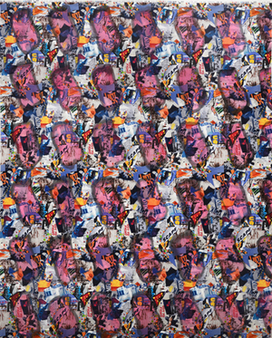 L’artiste décline sa forme fétiche sur des toiles imprimées aux motifs très figuratifs, mais aussi sur des supports synthétiques en jersey, aux textures particulières. Certaines de ces toiles font un clin d’œil aux oeuvres des artistes du Pop Art que l’on retrouve par des vignettes de BD, chères à certains d’entre eux. Un mise en abime s’effectue ainsi sur plusieurs décennies avec un brin d’humour, par un artiste ayant été un fondateur du mouvement Supports-Surface.