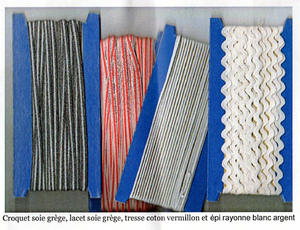 Sur une invitation d’Yves Sabourin, une cinquantaine d’artistes ont travaillé à partir de trois échantillons de tresses et lacets qui leur avaient été remis. Ayant des techniques différentes (broderie, dentelle, céramique, dessin…) leurs œuvres devaient également respecter un format imposé. Après une présentation à la Maison des Tresses et Lacets de Moulin Pinte à La Terrasse-sur-le-Dorlay (42) cet été, l’exposition se re-déploie à la Galerie Made in Town, constituée de deux espaces entièrement dédiés à l’esprit de la fabrication dans les domaines de la mode, du design et de la gastronomie.