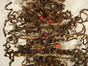 Tisserande et herboriste, Marie-Noëlle Fontan crée depuis 1994 des œuvres complexes et raffinées en tissant des végétaux avec des fils de couleur.