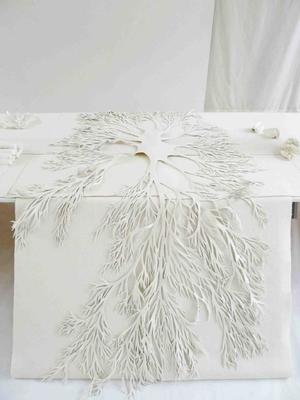 À l’invitation des Musées de Charlieu pour 2015, Yves Sabourin, Commissaire invité, a souhaité proposer cinq artistes plasticiens qui utilisent des techniques et des matériaux divers : l’application, la broderie, la couture, la dentelle, l’impression, la maille, le nouage et également le dessin, la peinture, la sculpture, le numérique et la gravure en gaufrage avec, au delà du fil, des médiums comme le papier, le verre, la roche, la farine.