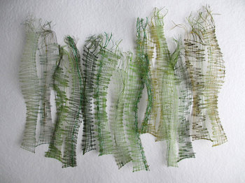 Véronique Porot croise les fils au gré de ses envies et de son imagination. En trames abstraites ou figuratives, en sculptures de fils planes ou suspendues, elle joue avec les matières et les couleurs, la lumière, la transparence, les pleins et les vides.