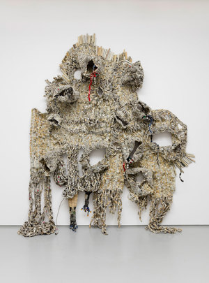 Né au Zimbabwe, in 1983, Takadiwa est connu pour ses sculptures murales, faites de débris récoltés, tels que bouchons de bouteilles, pièces d’ordinateurs et autres objets en métal, qui interroge la culture, le langage et l’environnement. L’exposition présente un nombre de ses sculptures qui curieusement, et bien qu’elles n’en est pas la matière, s’apparente immédiatement à des tapisseries.