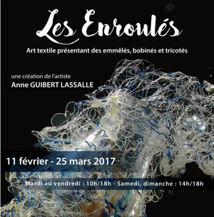 Exposition présentant des « emmêlés » (statues en feutre de laine), des « bobinés » (tentures et portraits portant des bandes de tissus enroulés et serrés) et des « tricotés » (tentures, volumes et portraits réalisés à partir de tricotages).