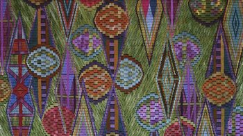 Joyce travaille exclusivement avec des fils de soie â le seul matĂ©riau qui offre la luminositĂ© et lâintensitĂ© de la couleur dont elle a besoin pour son travail kalĂ©idoscopique.