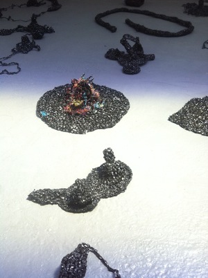 Les K7 VHS d’Aurélia Jaubert trouveront une nouvelle vie. Leurs bandes magnétiques, extirpées de la boîte, aspireront à une autonomie et se transformeront en dédales de formes organiques, de sculptures semi-molles. Comme si les films échappaient à leur fonction classique et se métamorphosaient en d’autres formes : tissages, sculptures, installations ?