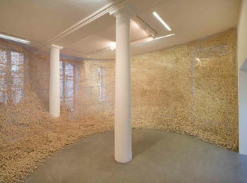 L’artiste japonais s’empare littéralement de la galerie pour sa quatrième exposition personnelle, avec sa structure de bois composée de plus de 100 000 baguettes chinoises en bois de pin.