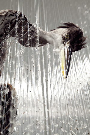 Les installations, construites avec des matières organiques (poils), végétales (graines), synthétiques (nylon) et animales (insectes, mammifères) forment un tout, telles des matrices insufflant la vie et elles entraînent une réflexion sur la temporalité de toute chose et du cycle de la vie. Des installations donnant le vertige, recréant une certaine force centrifuge exercée par des éléments naturels comme le vent ou l’eau.