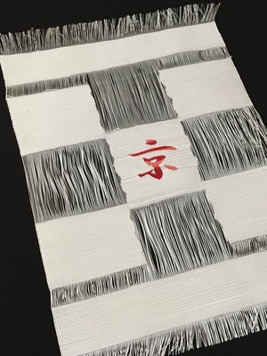 Le tissage de la tapisserie « Tsuzuré-Ori » s’effectue par l’artisane qui dessine une image ou un motif en grattant des fils colorés avec son ongle limé en dents de scie, utilisé comme un peigne. Entièrement réalisée à la main, cette technique similaire à celle de la Manufacture des Gobelins, entre dans la catégorie du tissage d’excellence « Nishijin-Ori » qui utilise de la soie, ainsi que des fils d’or et d’argent teints préalablement.