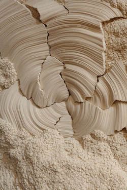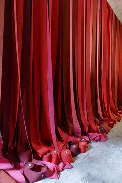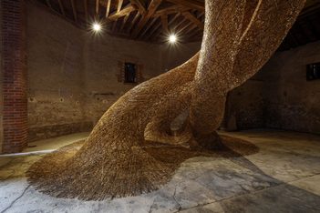 Un tissage en bambou deTanabe Chikuunsai IV, une sculpture de plis de Simone Pheulpin et une installation de bandes de tissus de Sheila Hicks.