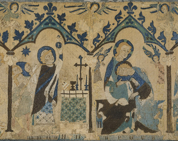 Tour d’horizon des principaux centres et aires de production de broderie, l’exposition nous transporte du monde germanique à l’Italie, en passant par l’aire mosane, la Flandre et les anciens Pays-Bas, l’Angleterre et la France. Elle dresse également un tableau de la fonction artistique et sociale de la broderie médiévale en abordant les techniques, processus de fabrication et relations entre commanditaires, brodeurs et brodeuses, peintres et marchands.