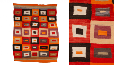 More than 80 of these remarkable textiles in striking colors of orange, red, gold, blue and green are on view.