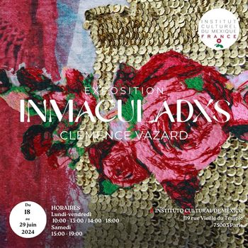 Réalisée au Mexique, l’œuvre Inmaculadxs, formée d'une série de photographies imprimées et brodées de 20 000 sequins à la main s’inspire de l’iconographie de la Vierge de Guadalupe, réinterprétée par La Bruja de Texcoco, pour ouvrir la question du genre.
