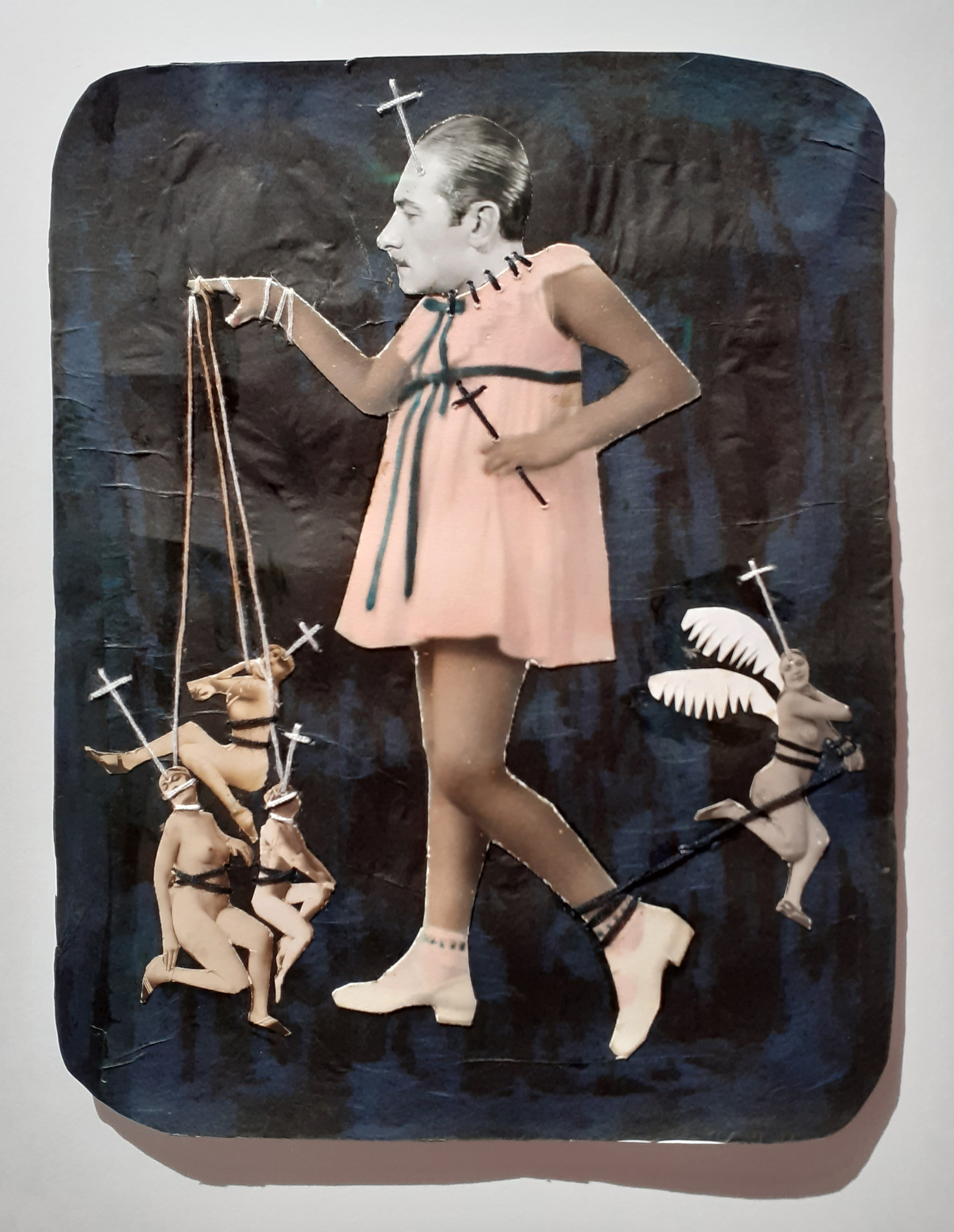 Jorege Alberto Cadi n'est pas un artiste textile ; il n'est pas non plus un photographe. Il compose de façon obsessionnelle des photomontages, retravaillant les images découpées avec des points de fils noirs. Il laisse exploser sa rage existentielle, chaque collage étant une sorte de duel, où règnent la violence et l'humour, par lesquels il règle ses comptes à chacun.