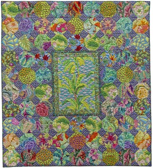 Cette exposition présente 23 grandes nouvelles courtepointes et s'inscrit dans le livre à paraître de Kaffe, Timeless Themes. Kaffe a fouillé dans ses archives d'imprimés pour montrer les différents motifs auxquels les gens aiment revenir encore et encore dans des motifs patchwork : rayures, cercles, pois, fleurs et feuillages.