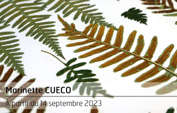 Marinette Cueco présente ses herbiers inspirés de nombreux écrits. Si parfois l’auteur réfléchit l’œuvre de l’artiste, il arrive aussi que le texte soit source d’inspiration dans la création des herbiers. L’exposition mettra en relation les textes et l’œuvre.